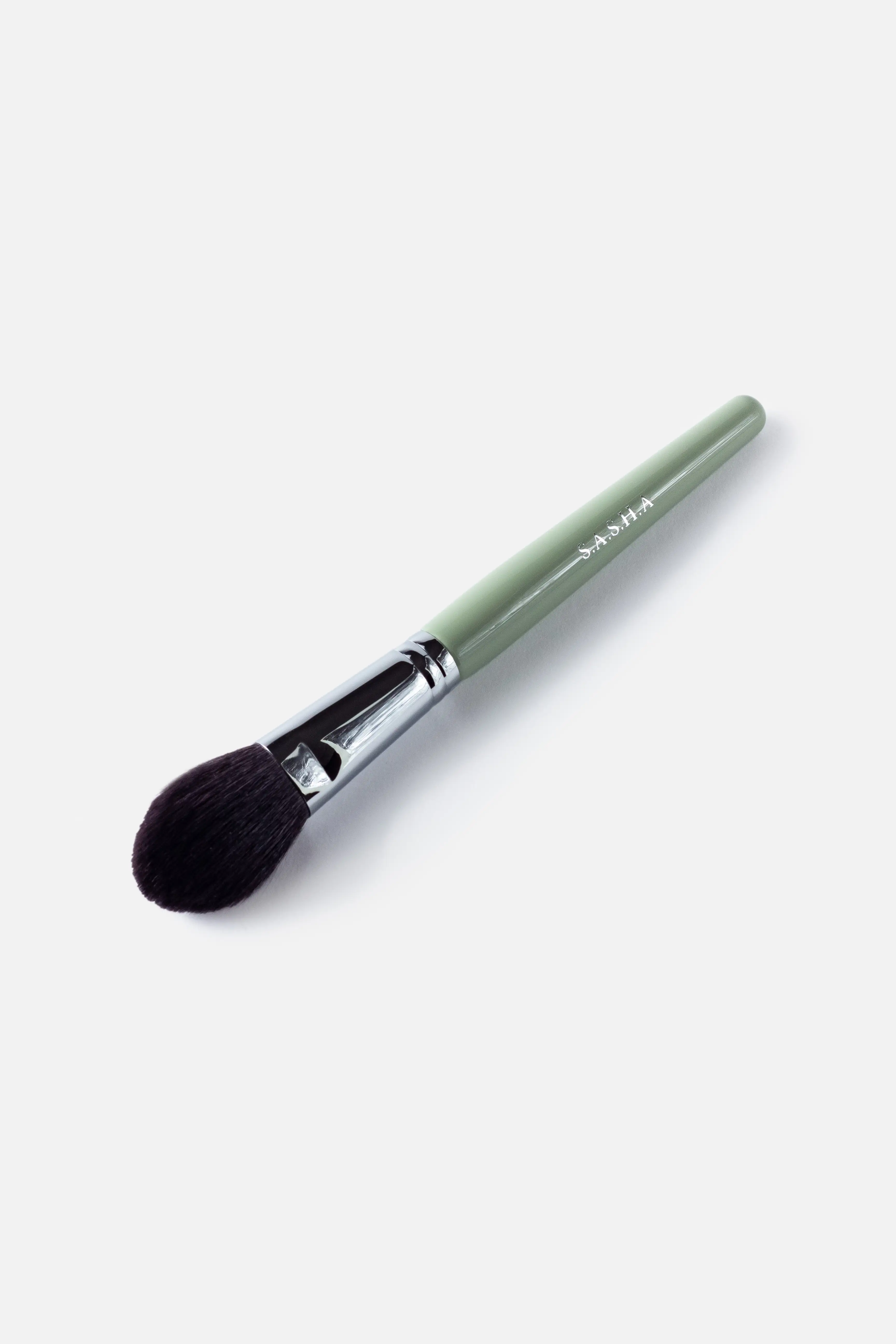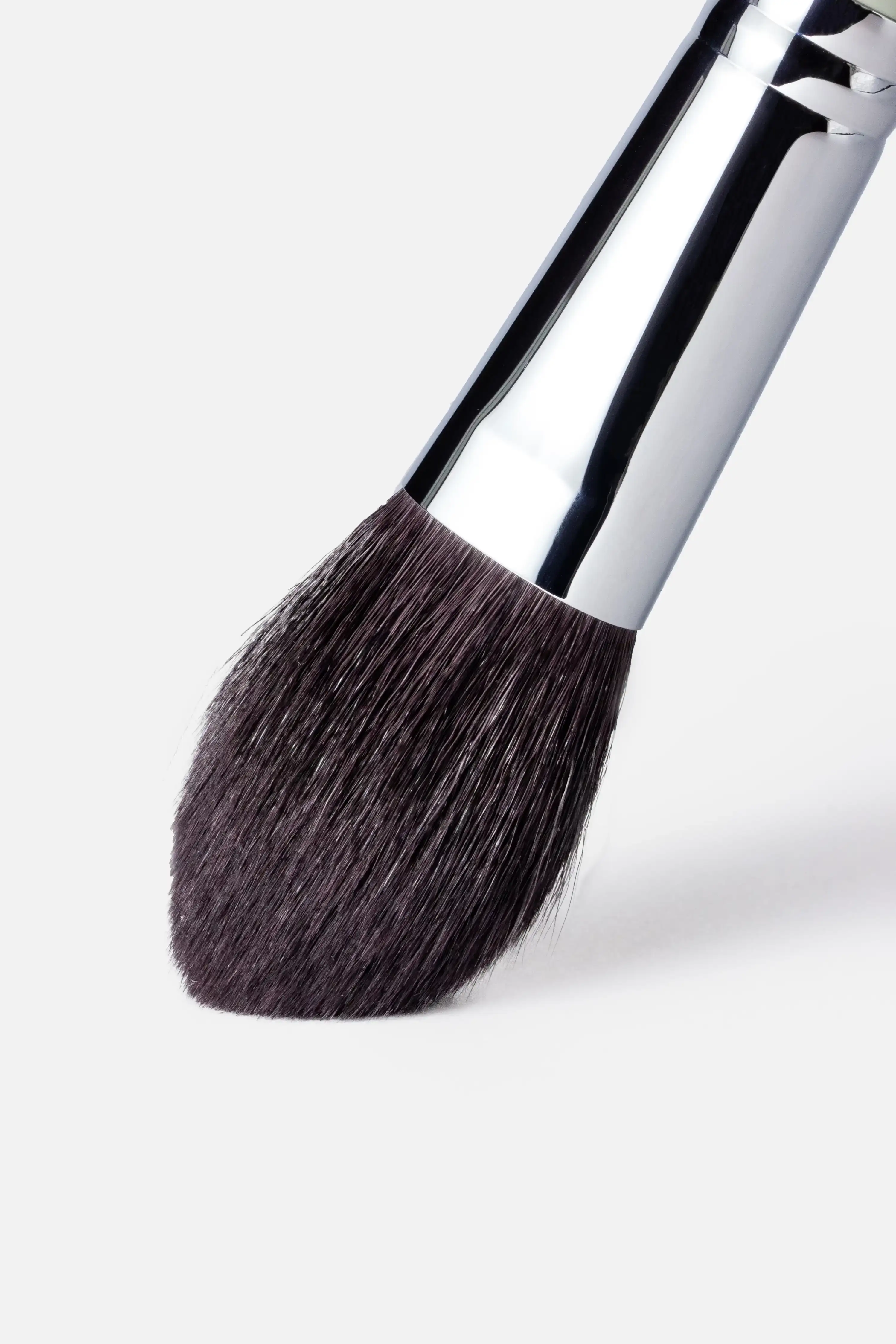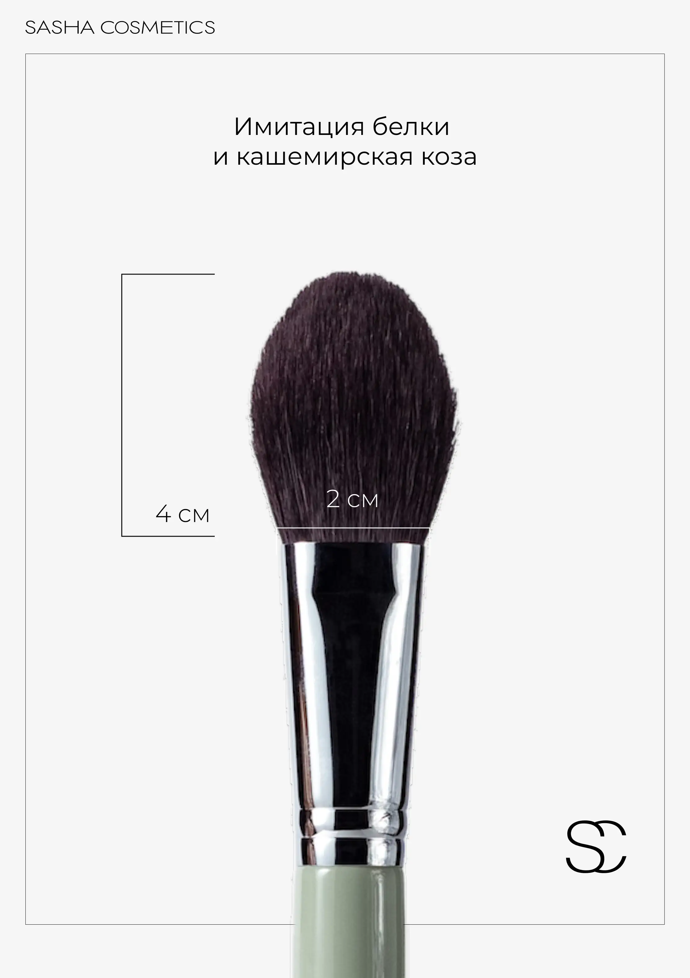 Кисть идеально работает с сухими текстурами и многофункциональная в работе. Создана для нанесения румян, мягкого скульптурирования и припудривания лица.